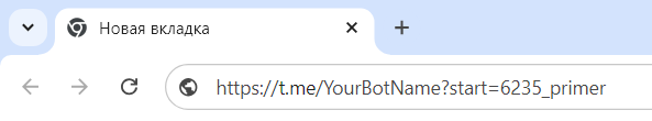 | Telegram Bot | после «?start=Id сценария бота_» | https://t.me/YourBotName?start=6235_key-code |