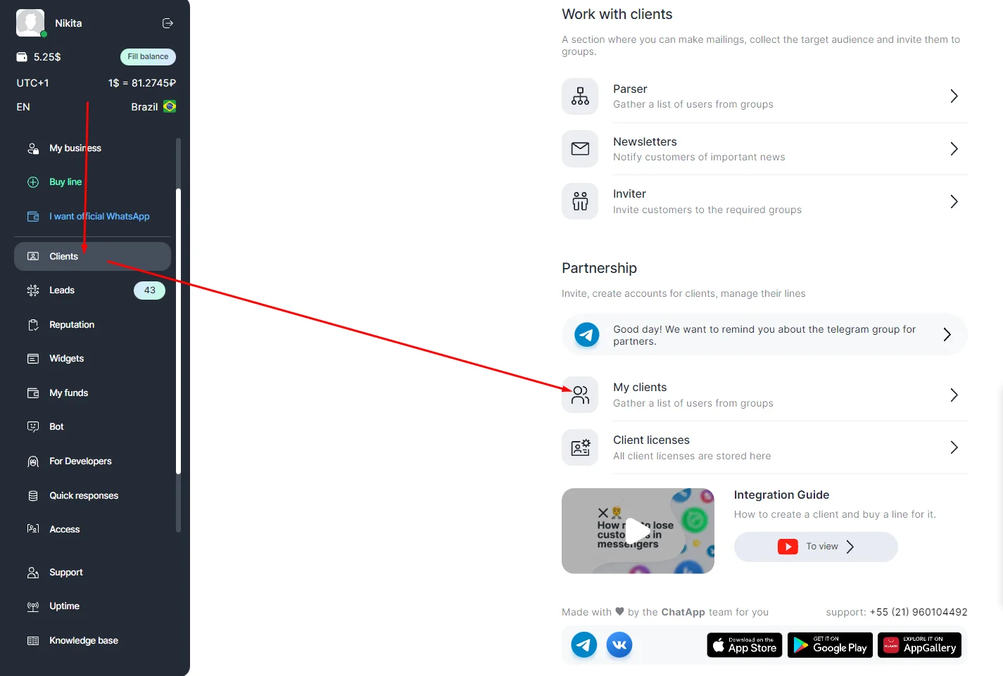 3. Everyone who uses it to register in their personal account will appear in the "My clients" menu section.