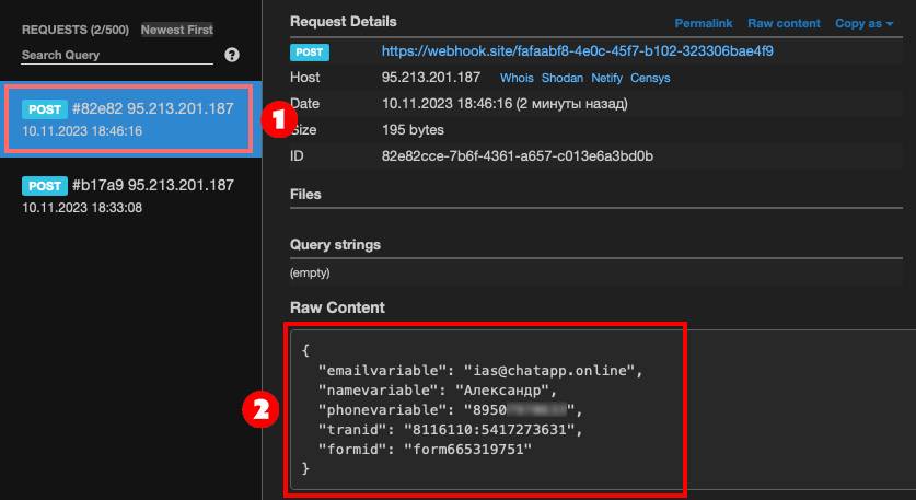 - Phone — Номер телефона указанный при заполнении формы.
