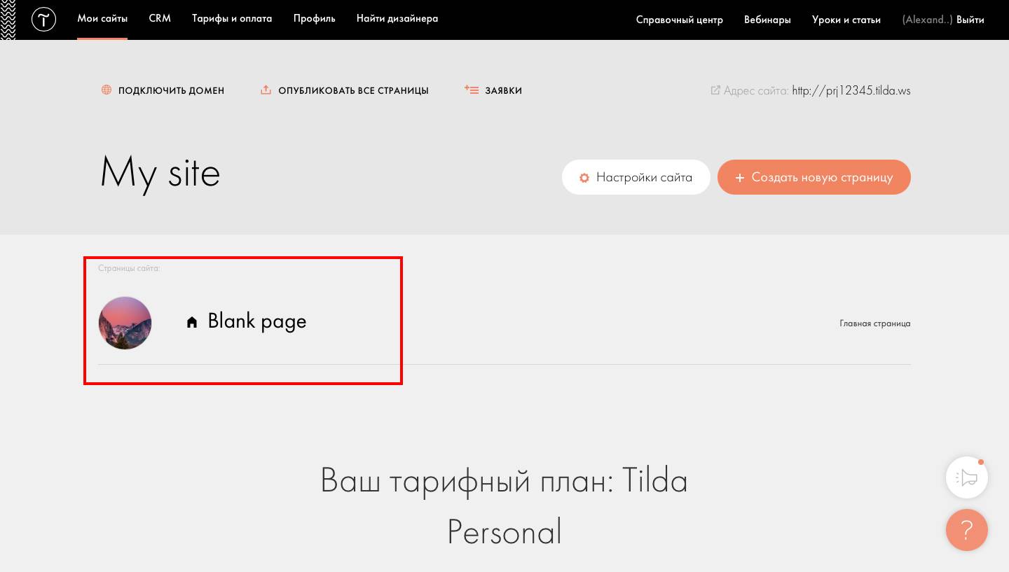 7. Назовите страницу и перейдите на нее;