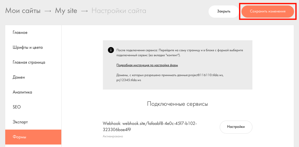 Готово! Вы подключили ваш Webhook к Tilda.