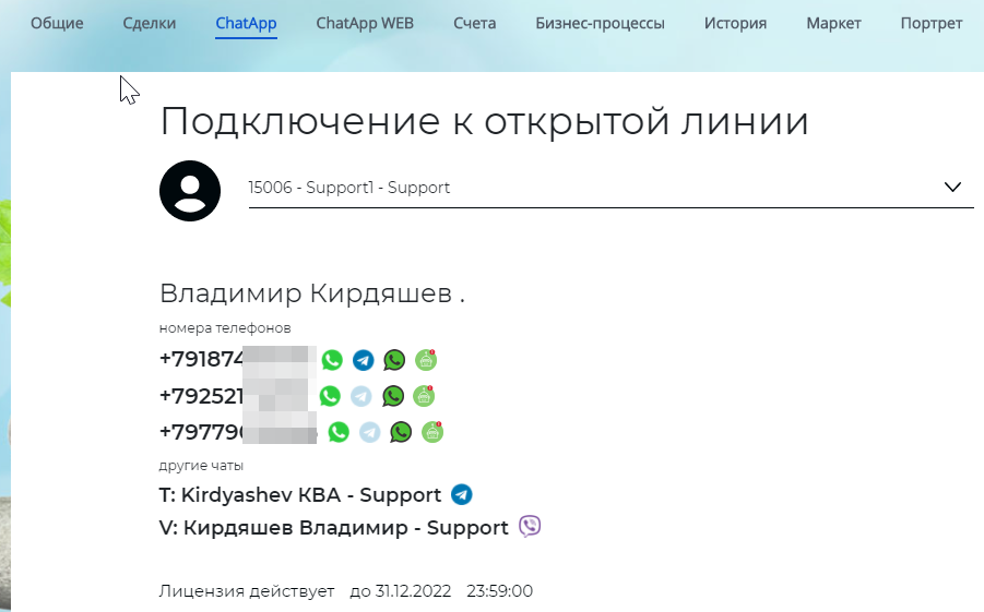 • В настройках выберете лицензию ChatApp из списка Аккаунт - будет доступна лицензия в которой подключен канал Viber bot.