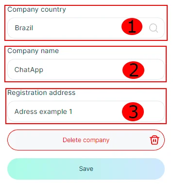 - In the Company data section, add your taxpayer identification number and company item for a legal entity.