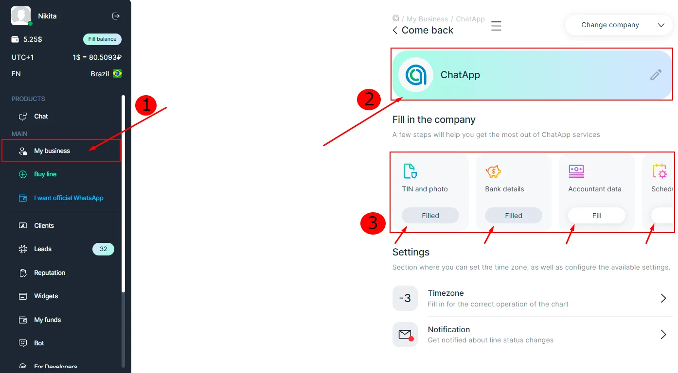 3. Add information about the organization in the Fill in the company section. To open the window for entering data, click on the Fill button.