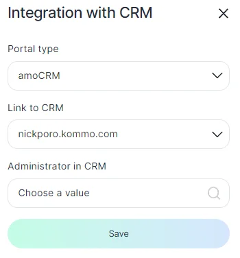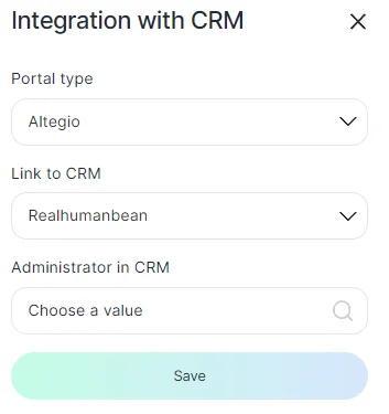 5. In the Fill in the Company section, scroll to the end of the carousel and click on Integration with CRM.