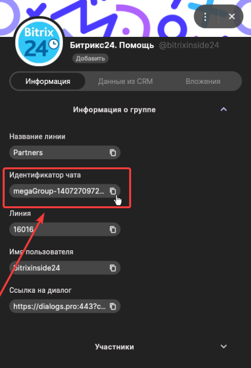 Group ID также можно копировать из диалогов ChatApp Dialog.