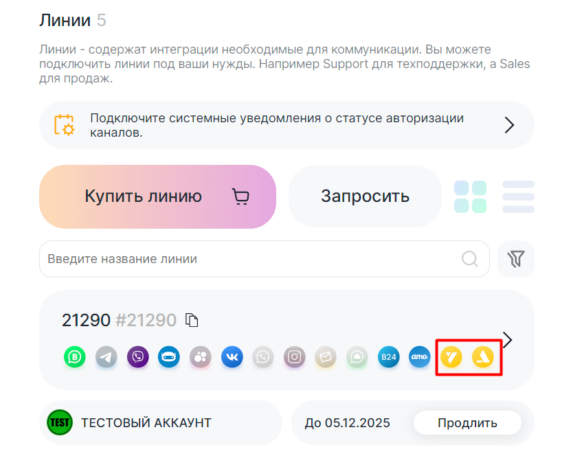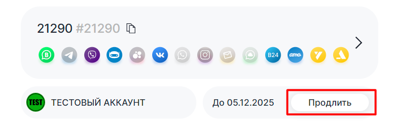 4. Когда все настроено, вернитесь на главную страницу Личного кабинета и продлите линию ChatApp.