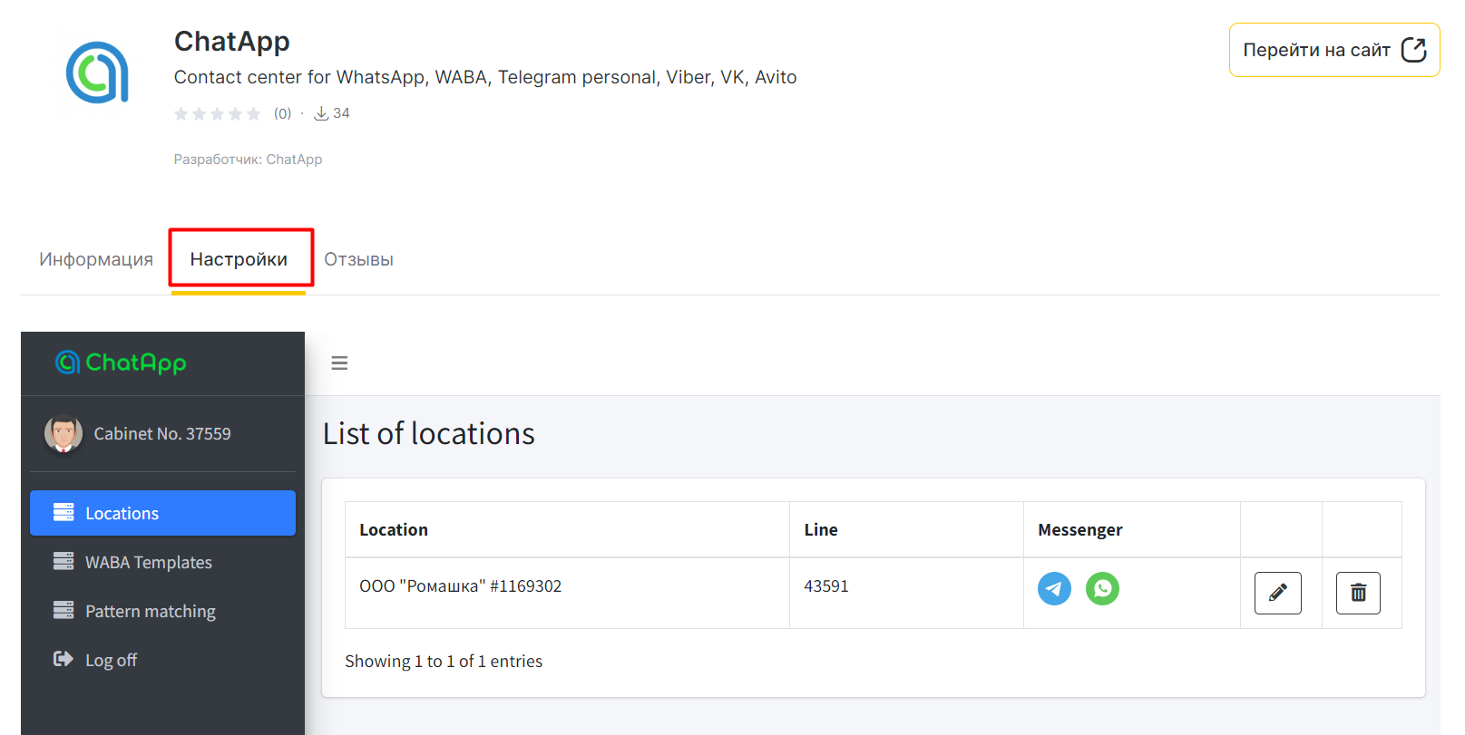 1. Перейдите в настройки линии в Личном кабинете ChatApp.