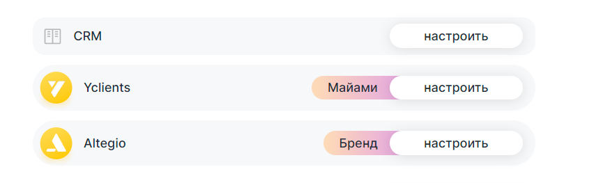 3. Нажмите «Настроить» напротив аккаунта Altegio и выберите нужный филиал.