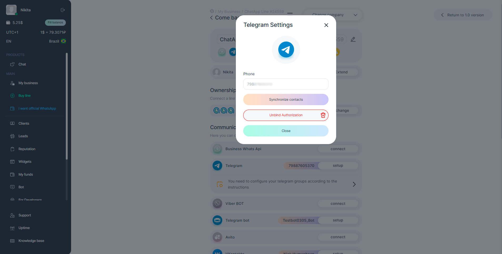 4. Connect Telegram Personal again