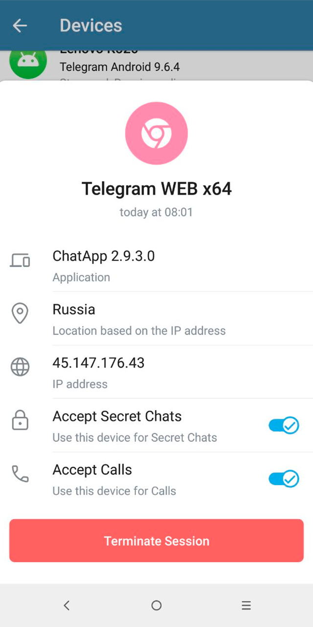 - Go to Devices and delete the ChatApp session.