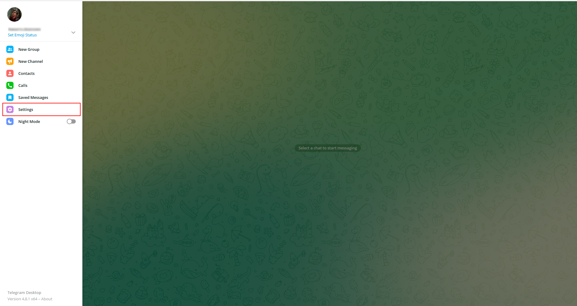 1. In the Telegram desktop client, click on the Settings button.
