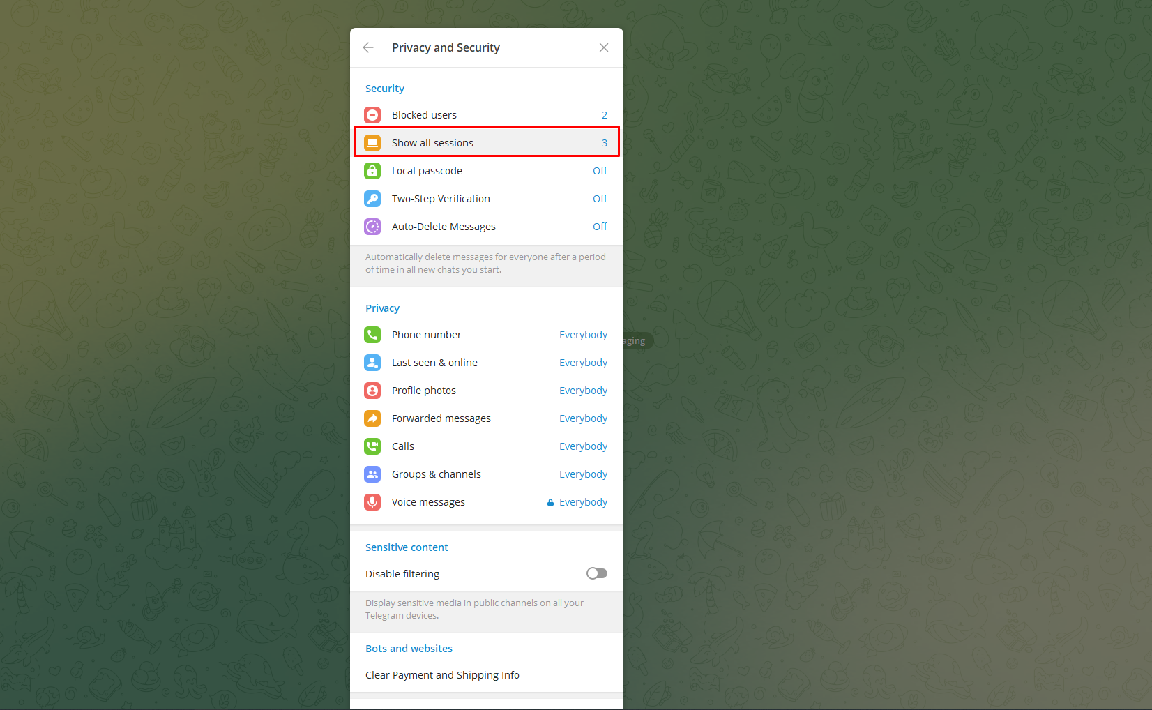 3. Click on Show all sessions.