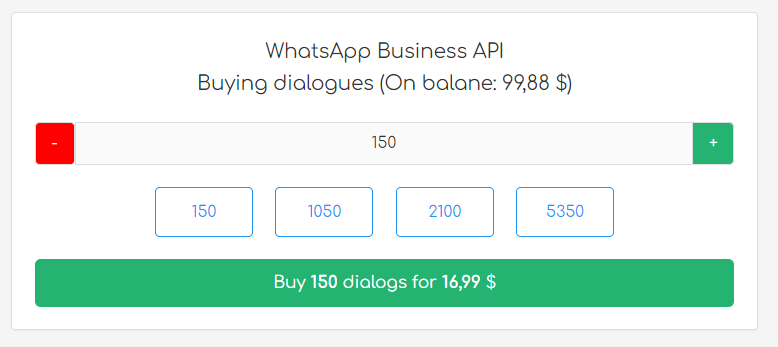 You no longer need to register on the provider's website and purchase dialogs through an additional service. We've simplified the procedure; you can pay for dialogs directly in ChatApp.