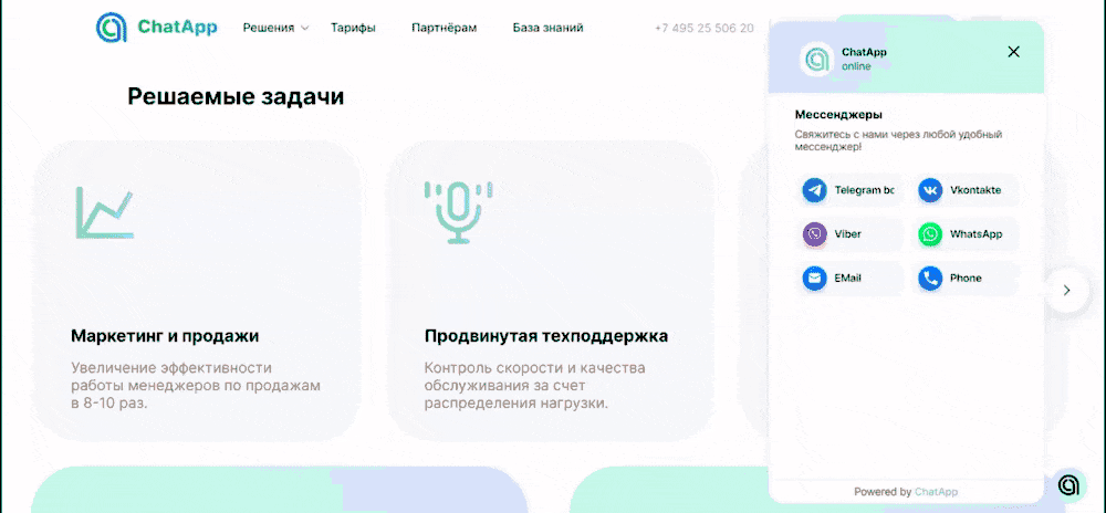 Отличный способ начать — установить виджет ChatApp для общения с клиентами. Это просто и бесплатно, а еще его не нужно переустанавливать, когда вы решите добавить в него новые каналы: они подтянутся на сайт автоматически. Инструкцию по установке Виджета 2.0 читайте в базе знаний.
