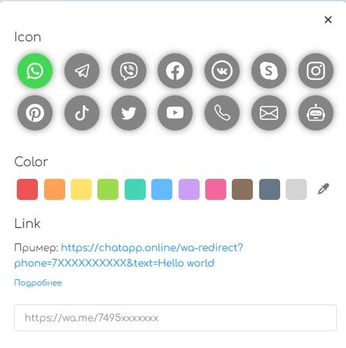 Если вы хотите, чтобы клиенту в мессенджере предлагался готовый текст, отправьте ссылку вида: https://chatapp.online/wa-redirect/?phone=79675553103&text=добрый день. Вместо «добрый день» можно написать любой другой текст или вставить эмодзи.