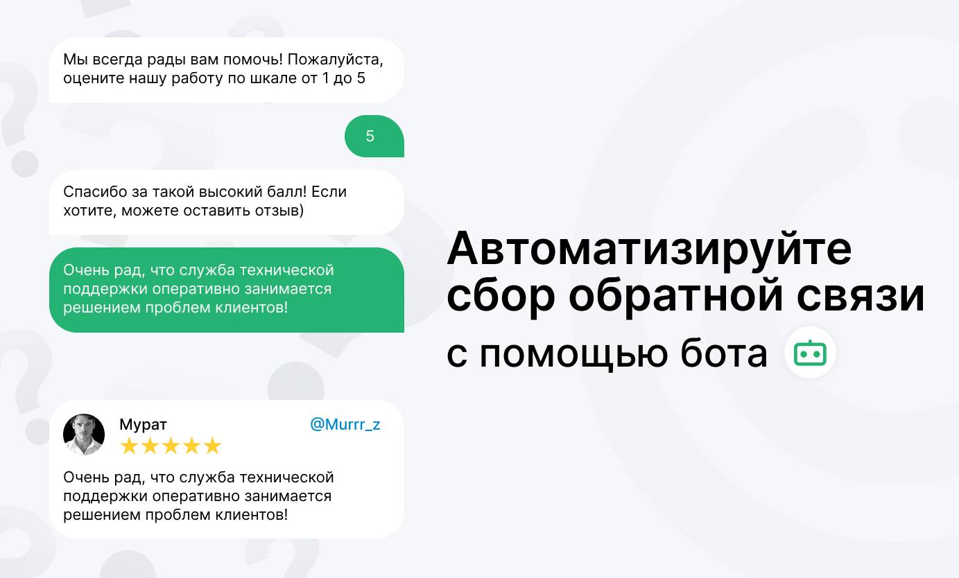 Например, если пользователь напишет «спасибо за помощь», бот предложит дать оценку оператору.