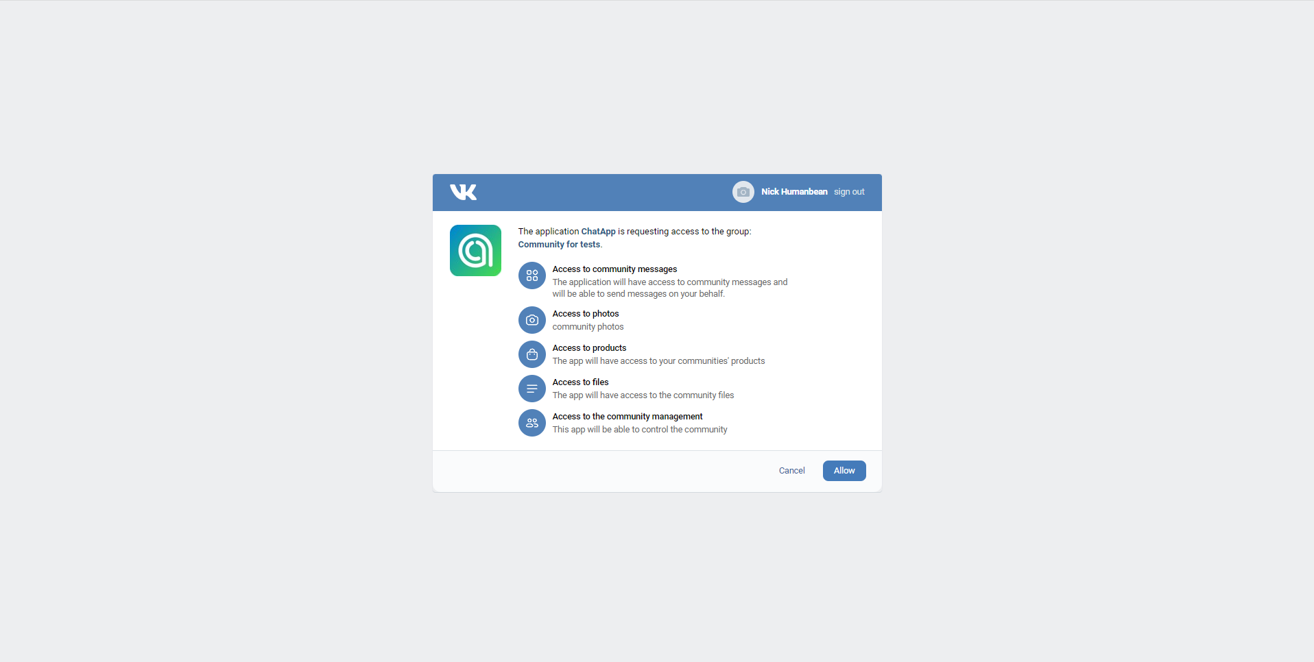 - Reflection in the chat of messages that were sent from the VK (from the account connected to ChatApp);