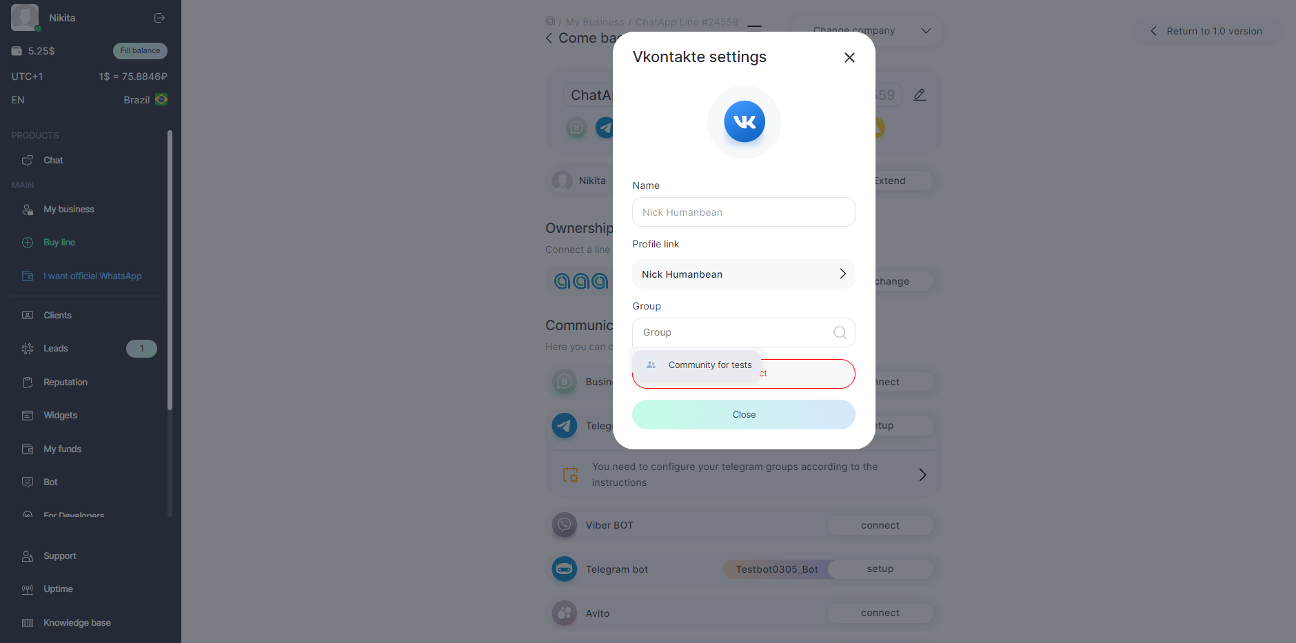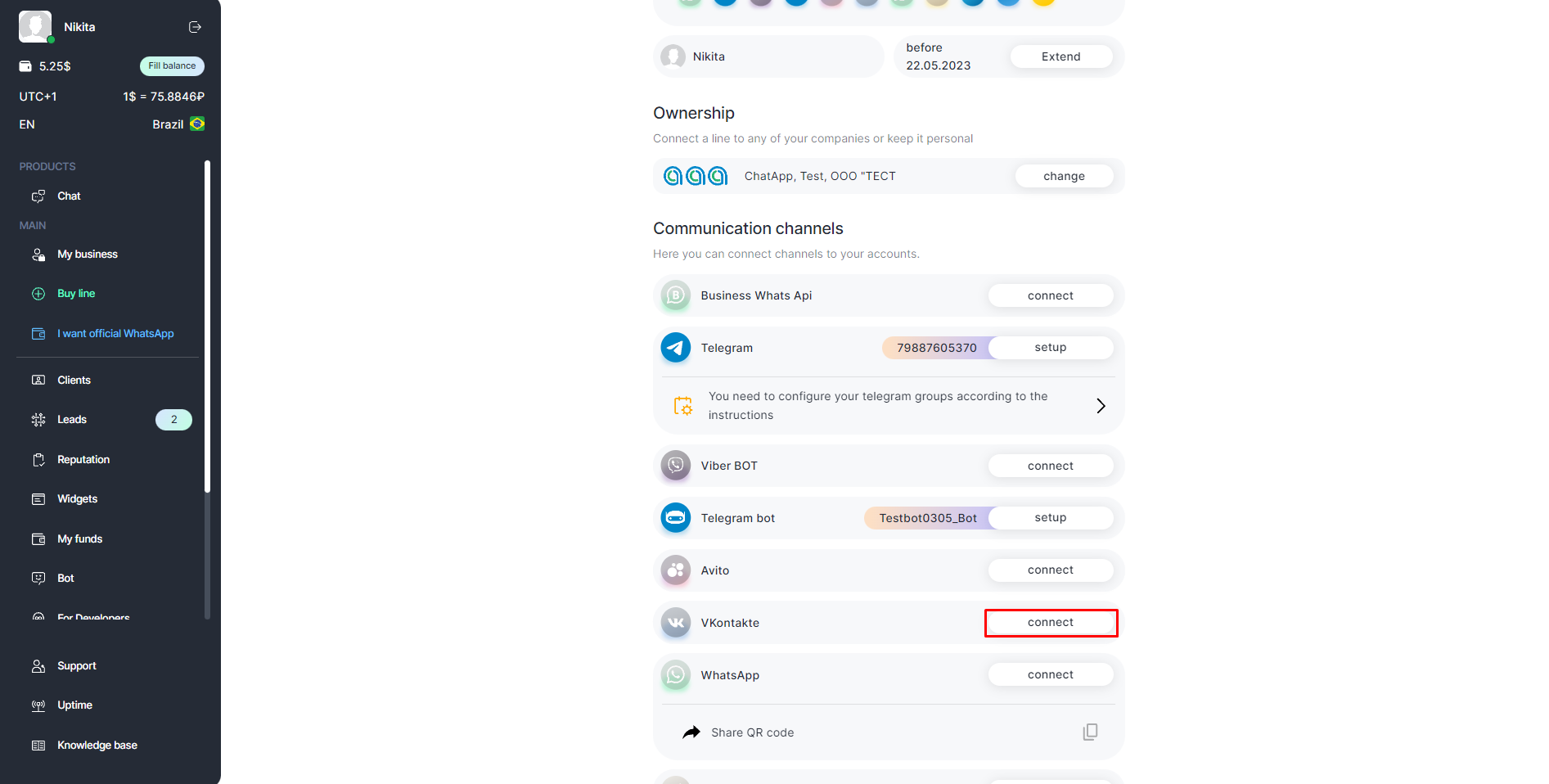 The VK (VKontakte) channel allows you to promptly respond to VK messenger messages, monitor chats and always stay in touch with your customers.