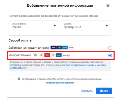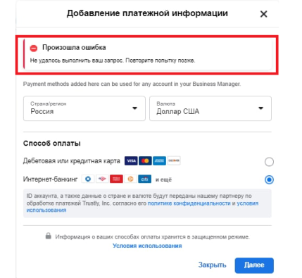 Основная проблема оплаты услуг Facebook* ― нет безналичных расчетов для России, при чем ни в рублях, ни в долларах, интернет-банкинг доступен для других стран (например США, оплата $).