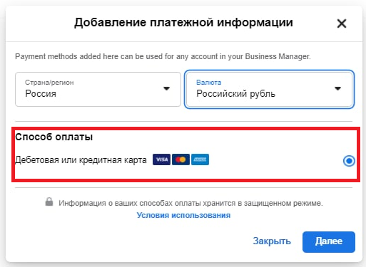 Оплата услуг Facebook* доступна только банковской картой.