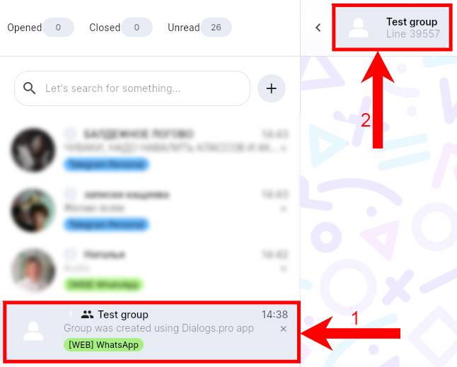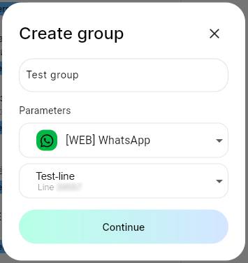 3. Set the name of the group. Select WhatsApp in the messenger selection field. Select a line. Click “Continue”;