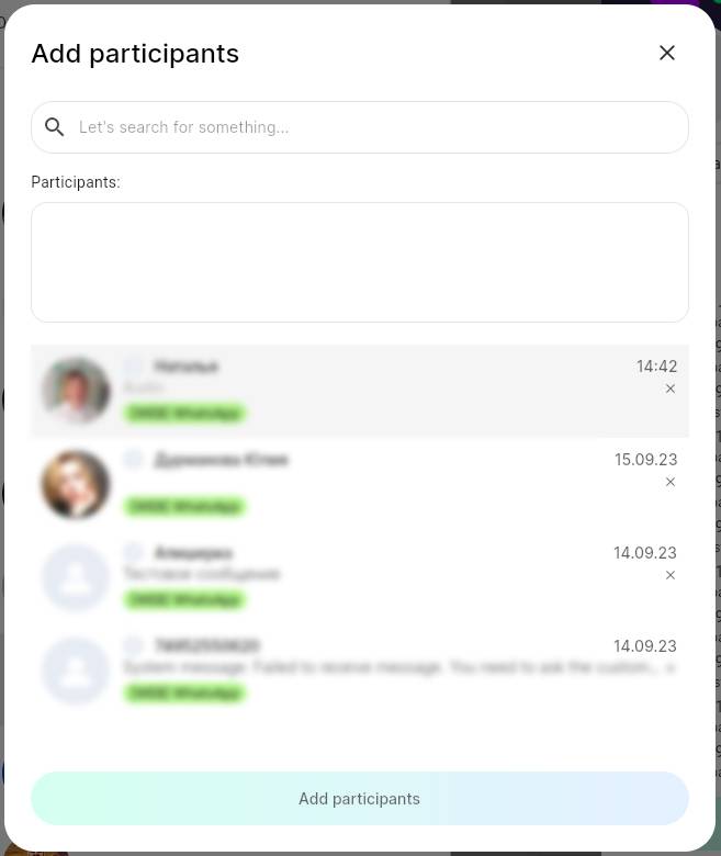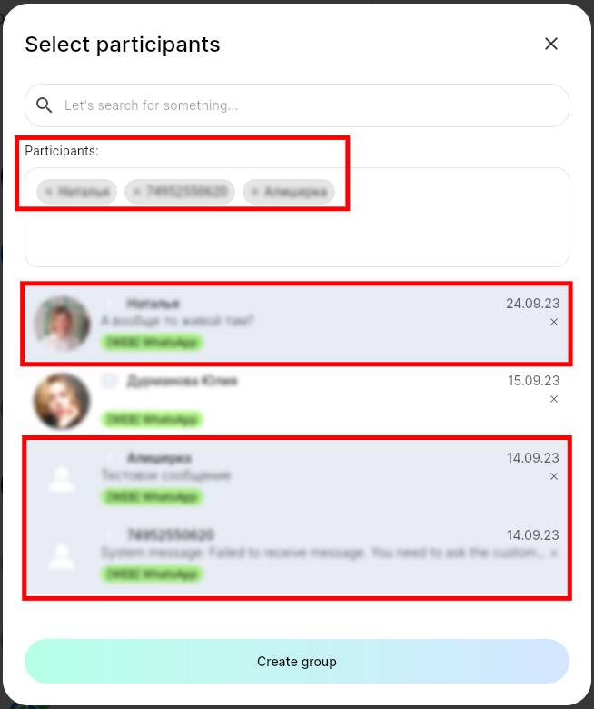 4. Select group members. The selected users will appear in the “Participants” field;