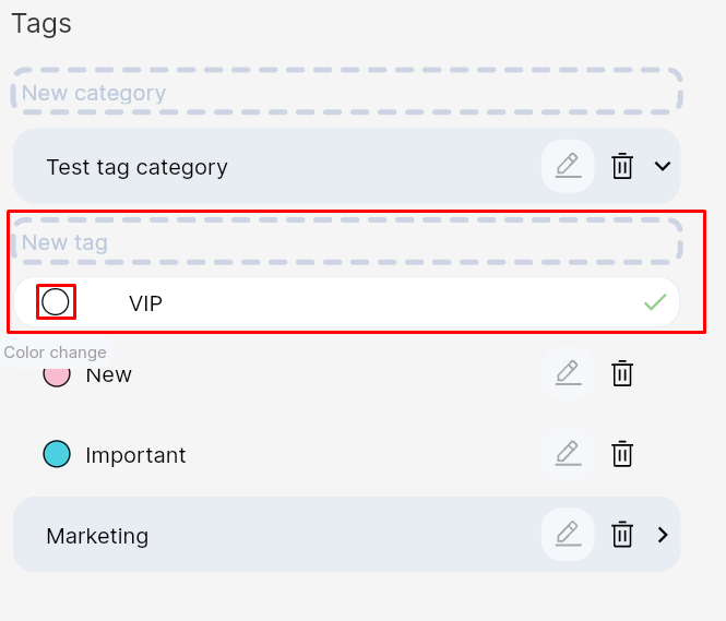 Important: You can only add one tag from one category to a chat.