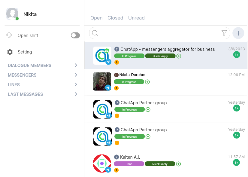 ChatApp uses interactive tags allowing you to tag dialogs by importance/urgency, types of clients/leads segmentation, assign your own unique categories, it will help all employees to see changes in chats immediately and to work more efficiently with dialogs and improve the time of their processing.