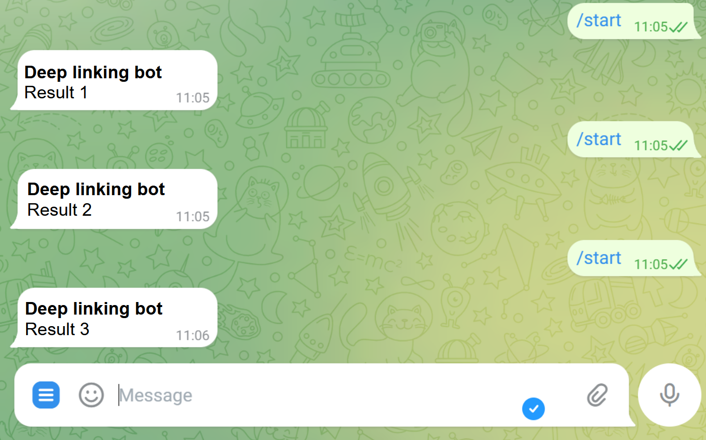 | Initial link to the bot | Deep link to bot |