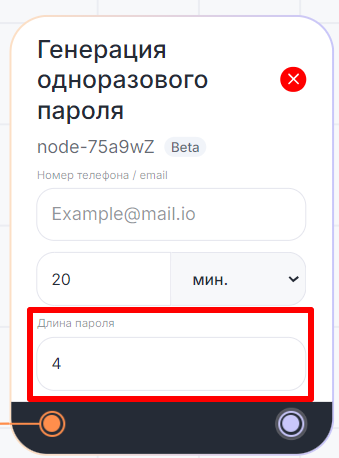 - Set the password length - specify the number of characters. The maximum password length is 20 characters, the minimum length is 4 characters.