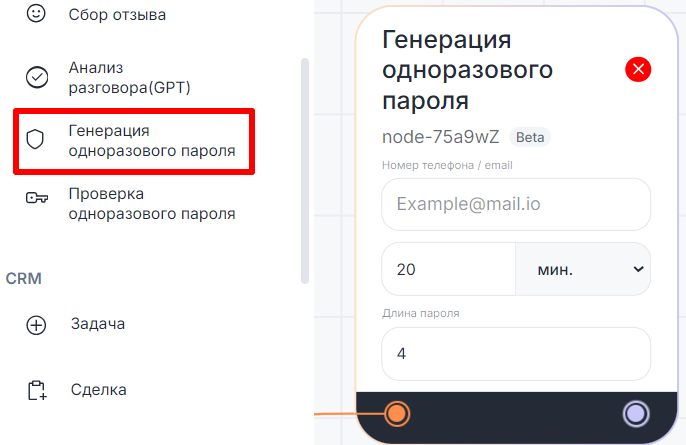 The One-time password generation block creates a unique code and associates it with a user ID, for example, a phone number or mail. This may be required for registration via a form on the site, order confirmation in an online store or payments.