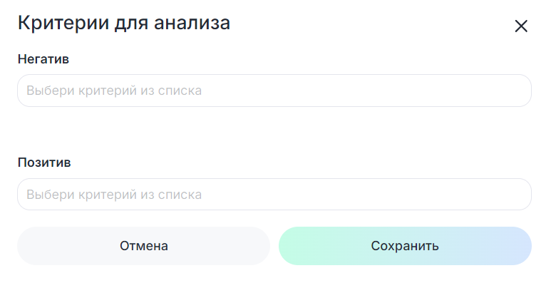4. To specify a list of criteria that the block will analyze, click "Criteria to analyze". The parameters are divided into "Negative" and "Positive".