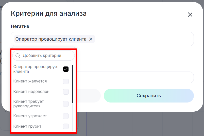 You can create any criterion that ChatGPT can analyze. For example, "Operator is rude". The block will return a result, either "True" or "False".