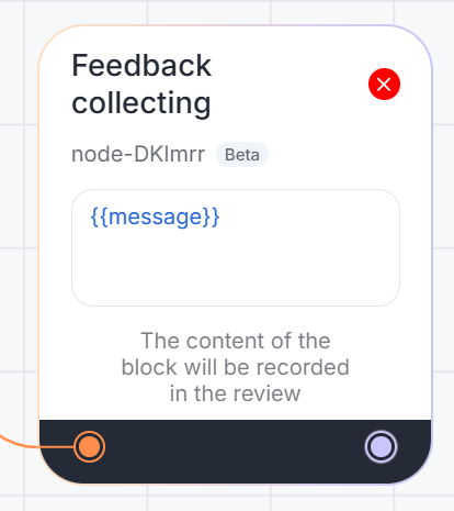 The "Feedback Collection" block gathers user feedback during chats and saves it in the "Feedback" field within the "Metrics" section. This block is useful, for example, for evaluating the performance of technical support specialists.