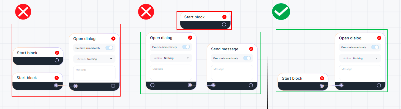6. There can be only one "Open a dialog" block;