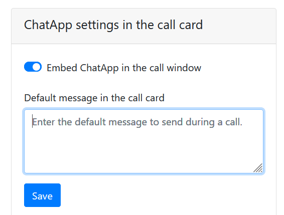 Turn the "Embed ChatApp in Calling Card" slider to the right for activation. Or leave it off if you want to hide the tab.