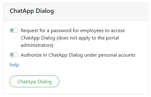 Enabled — An employee will be able to open ChatApp Dialog from Bitrix24 without authorization under the corresponding employee of the personal account.
