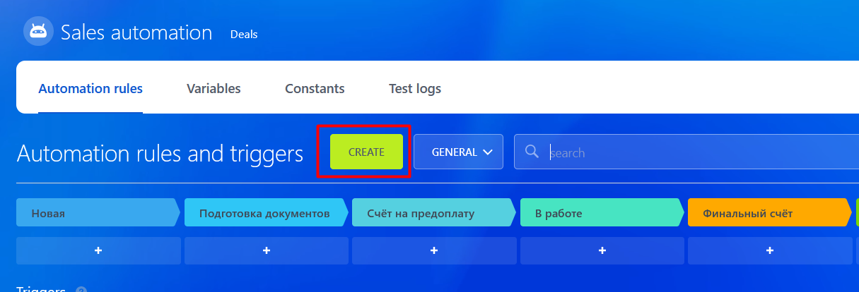 1. Enter the section "CRM" and click on "Automation rules".