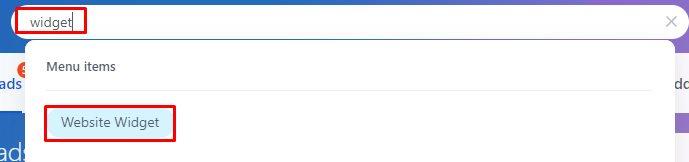 1. Use the Search Bar, and write in “Widget”. In Menu Items select “Website Widget”
