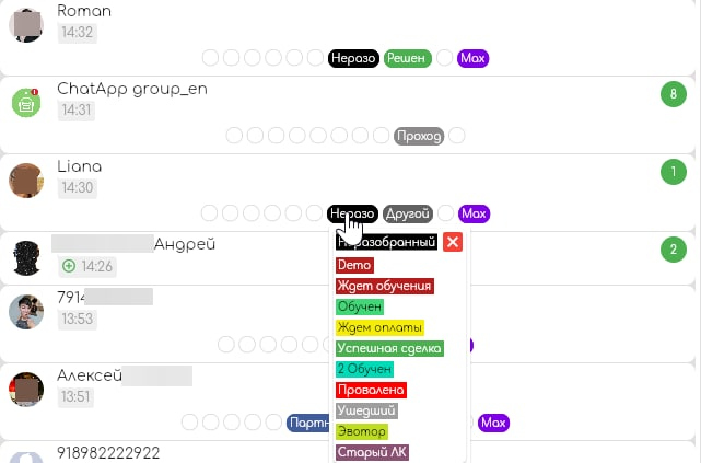 Salesbot Kommo allows you to set dialog labels in the ChatApp WEB chat.