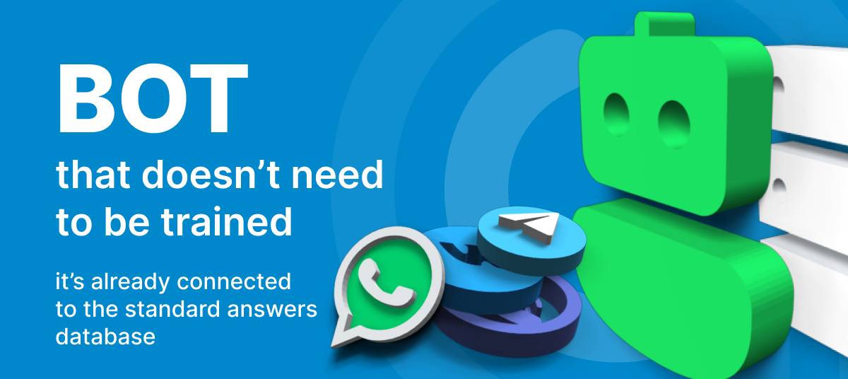 - When all operators are busy you involve the bot. It takes messages from the database and answers to questions from chat in seconds!