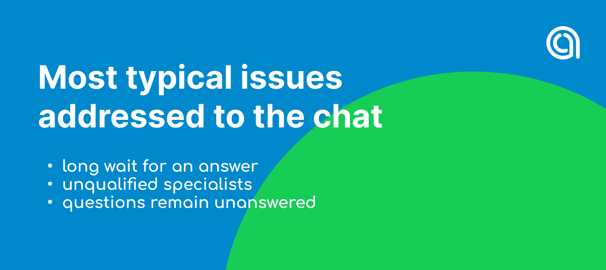 What are the most common problems clients face with when they write to the chat?