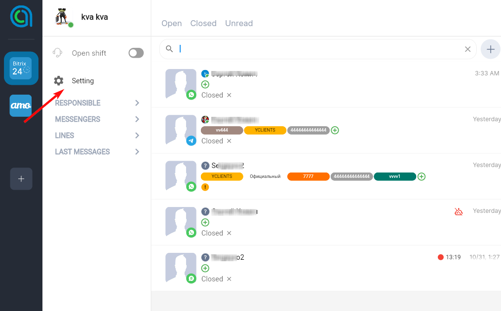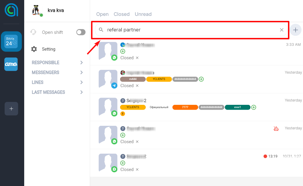 In addition, a very useful option has been added to the new version of the chat - the tag filter. It works simply - just enter the desired label in the search box and the system will sort the dialogs by it.