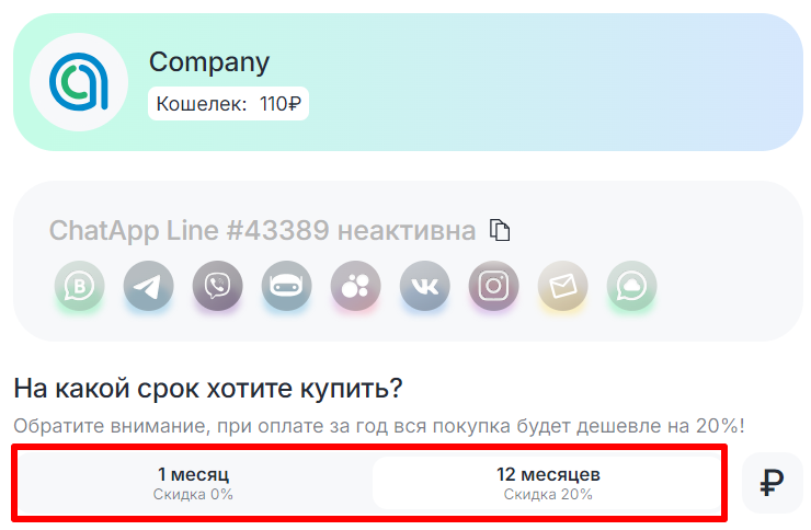 4. Выберите период доступа. При покупке на 12 месяцев действует скидка 20%.