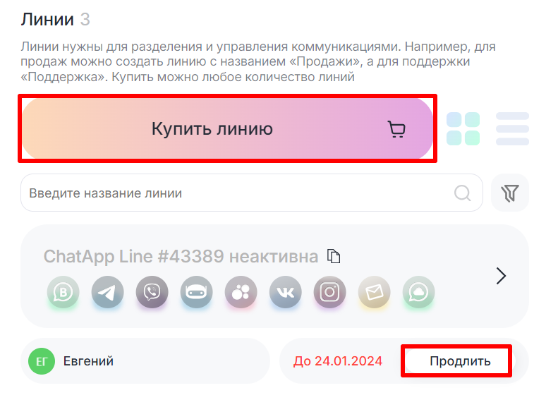 3. На открывшейся странице нажмите «Купить линию» или «Продлить» возле купленной ранее линии.