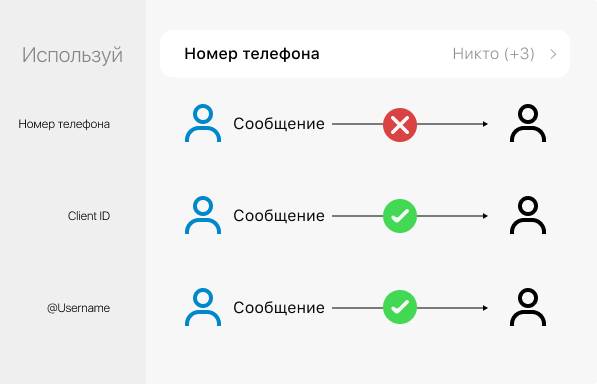 • «Никто» - галочка напротив этого пункта скрывает телефон пользователя и написать ему по номеру невозможно.
