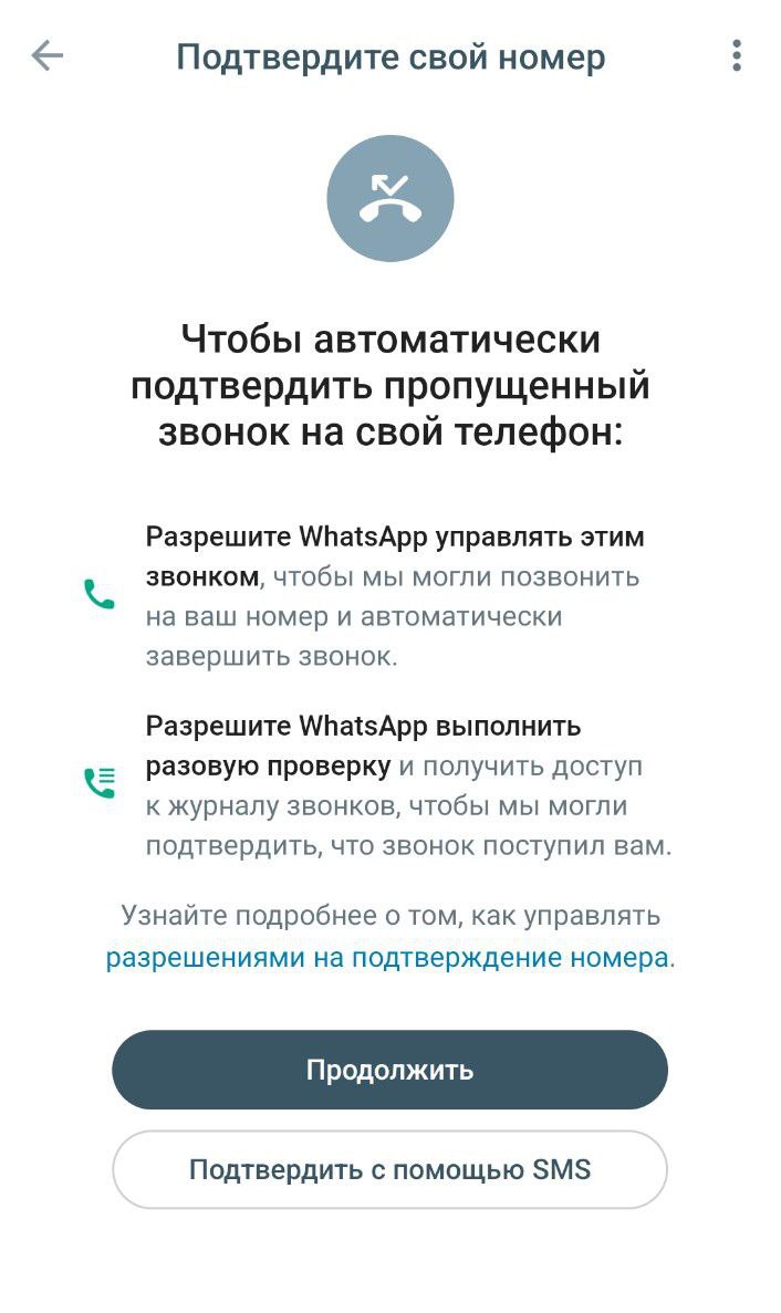 На стационарные телефоны не приходят сообщения, поэтому на стадии проверки номера выберите вариант звонка. Нажмите «Продолжить», чтобы получить код подтверждения через телефонный звонок: