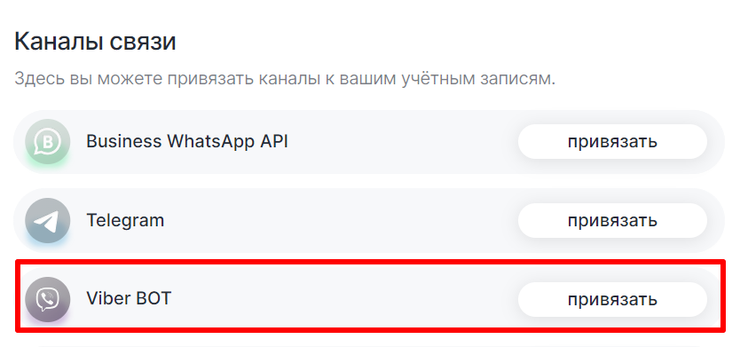 2. Нажмите «Привязать» напротив иконки Viber.
