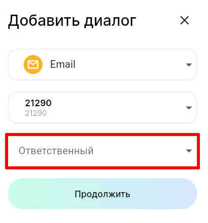 5. В поле «Ответственный» выберите сотрудника, к которому будет прикреплен диалог с пользователем.